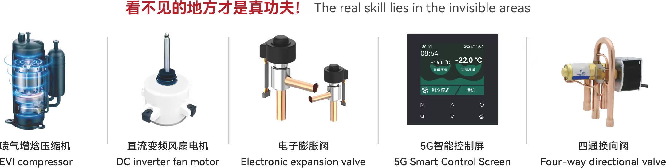 澳克莱冷库机组,搭载AI智控与直流变频技术,核心动力选用国际一线品牌低温变频增焓(EVI)压缩机——在深度冷冻工况下,制冷能力依然充沛,运行稳定可靠。AI智控实时监测库温与负荷变化,按需输出制冷量,避免频繁启停。